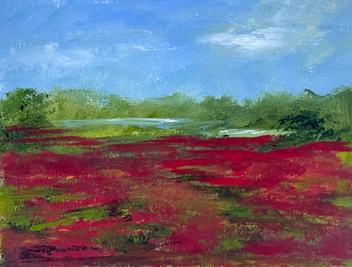 "Red Fields" a 4"x4" print framed in an acrylic block